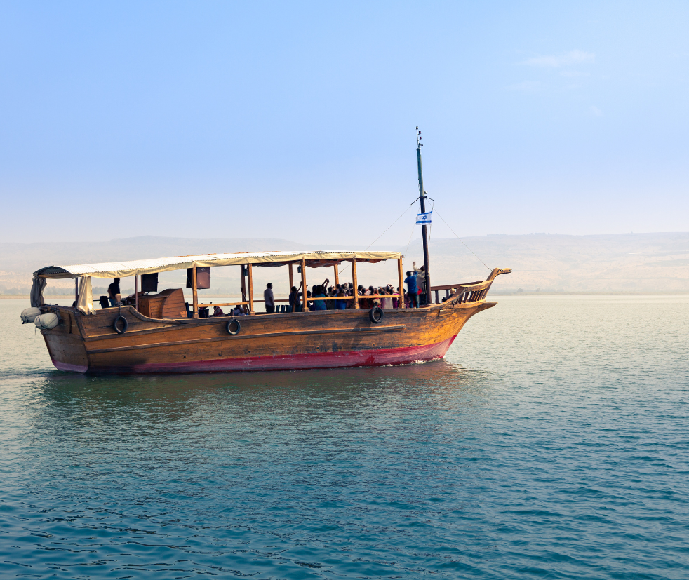 Café da manhã. Neste dia faremos um passeio de barco no Mar da Galileia e continuação para o Monte das Bem-Aventuranças, lugar do Sermão da Montanha. Na margem do lago visita a tadgha, local da multiplicação dos pães e peixes, e seguimos à Carfanaum. Via aldeia de Canã, chega-se a Nazaré, cidade berço do cristianismo e local onde Jesus passou sua infância e juventude. Visita à Basílica da Anunciação (erguida sobre o local onde ficava a casa de José e Maria), à Igreja de São José (construída sobre o local onde José teve sua carpintaria) e à Fonte da Virgem. À noite, jantar (incluído).